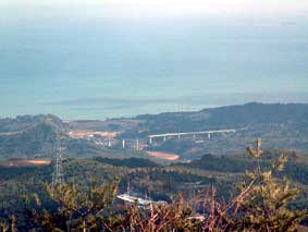 | 頂上は風も無く快晴の天気、水平線には大型の船が見え隠れしていた。 12:45分下山、雪の山はアセビの緑と三合目位から下だと思うが杉の木の間を通す 太陽の光が山の偉大さを感じさせられる。 今日はさすがに登山者は一人もいない、愛車の待つ空き地に午後1:40心地よい 汗が肌で感じることが出来る、車で35分6号線沿いにある |
