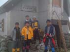 解らず通過したようだ(-_-) AM9:30御西小屋に到着 相変わらずガスで視界は10m位 山頂に行き