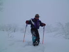 山頂を目指すが視界が悪く頂上は断念 風よけの窪地を見つけ食事をする ブランデーに雪を入れて