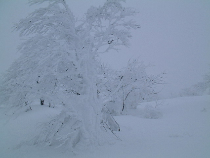 高度計と磁石を使い山頂へ2時間ほど登るが雪面の凸凹が判断出来ず悪戦苦闘