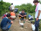 雨の心配いをしながら 野外での食事 周りの草木にはホタルが多く留まり ホタルの灯りが私達を童心に