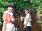 時折切れるガスの中 斉藤Fさんが 大朝日小屋を発見 感激(^o^)をした PM2:40銀玉水に到着(曇り)