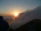 PM6:10山頂 しばらく待つと時折日差しが出る 町子さんにブロッケンが現れるかもと話をすると 何と一気に