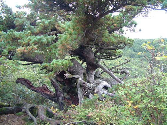 稜線に腰をドッカとおろすハイマツの巨木