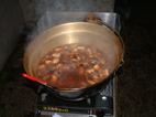 勢い良く川瀬に有る大岩に打ち当たり下流へ!!テントの準備も整い鍋の出来上がりいよいよ乾杯の時が来た