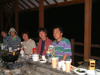 | 平成13年9月15日 東北の山ーML・オフミ「旗坂キャンプ場 15日郡山をAM10:00に大和市を目指しGO PM1:30キャンプj場に着く 早すぎて未だMLのメンバーは居ない 2:30迄昼寝をする キャンプ場に行くと数名の仲間が準備をしており すみません東北の山MLの方ですかと話しかけると 皆さん笑顔でそうです と返事が帰り早速仲間入り Kさんにビールをどうぞと頂き何もせずに ずうずしく飲む!! 3:00近くなると殆どのメンバーが集まり 芋煮会の 準備にかかる 料理をする人・薪を集める人・テントを張る人と自然に 分業され準備完了 オフミが始まった |