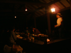 そこで もりさんの野外コンサートの始まり澄んだ美声にヤンヤの喝采 雨の音 渓流の流れ ランタンの明かりと