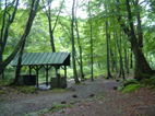 テント場に流れ込み昨夜の雨量を伺うことが出来た 静かなブナ林が 朝食の煮込みうどんの味を引き立て