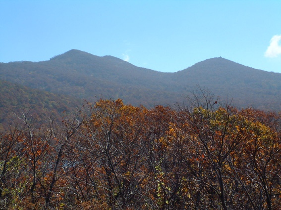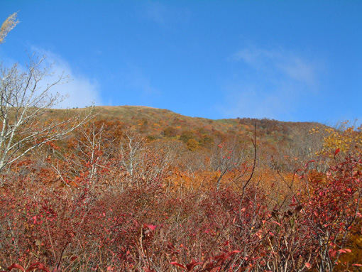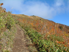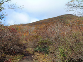 赤く染まる山肌 いよいよ雄国山の姿が間近に見える |