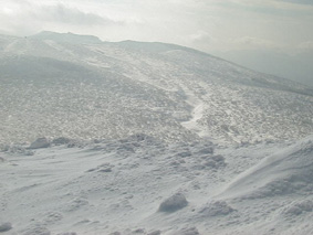 雪付きが足りない山頂付近