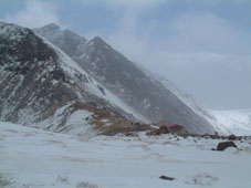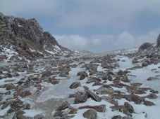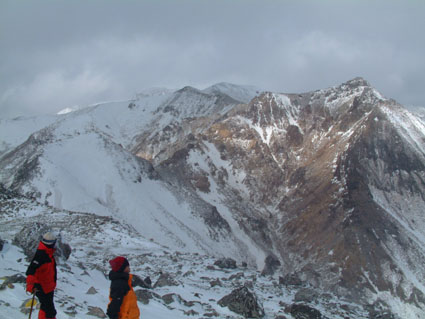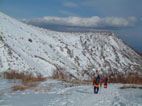 ![]() 那須岳 平成14年2月23日 うっすらとガスが架かる山頂を眺め 大丸温泉 駐車場より 圧雪されたトレースの上をアイゼンを付けて登る 峠の茶屋までは時折膝まで抜ける道 風通しの良い稜線に出ると殆ど雪は無い 峰の茶屋を前方に見て突風を抱き どんどん登る アクシデントを興しながら コース 大丸温泉駐車場AM7:45〜峠の茶屋AM8:45〜 峰の茶屋10:00〜朝日岳AM11:45〜 峰の茶屋休憩(12:25〜12:40) 茶臼岳PM1:05〜峰の茶PM1:40〜 大丸温泉駐車場PM3:05 |