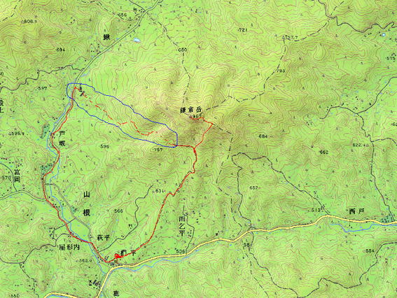 赤の点線は不明で殿上山を前方に見ながら下山した??