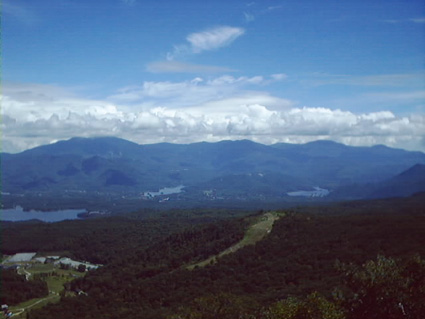 山頂より望む左から 檜原湖・小野川湖・秋元湖と湖が多く 日よけの雲の下には 左から西大巓・西吾妻・中大巓・東大巓・ 東吾妻山を望む事が出来た 只 猫魔ヶ岳の山頂から望む山肌は スキー場の開発で ブナ林が倒され 露骨に 出てる表土が気になりました |
