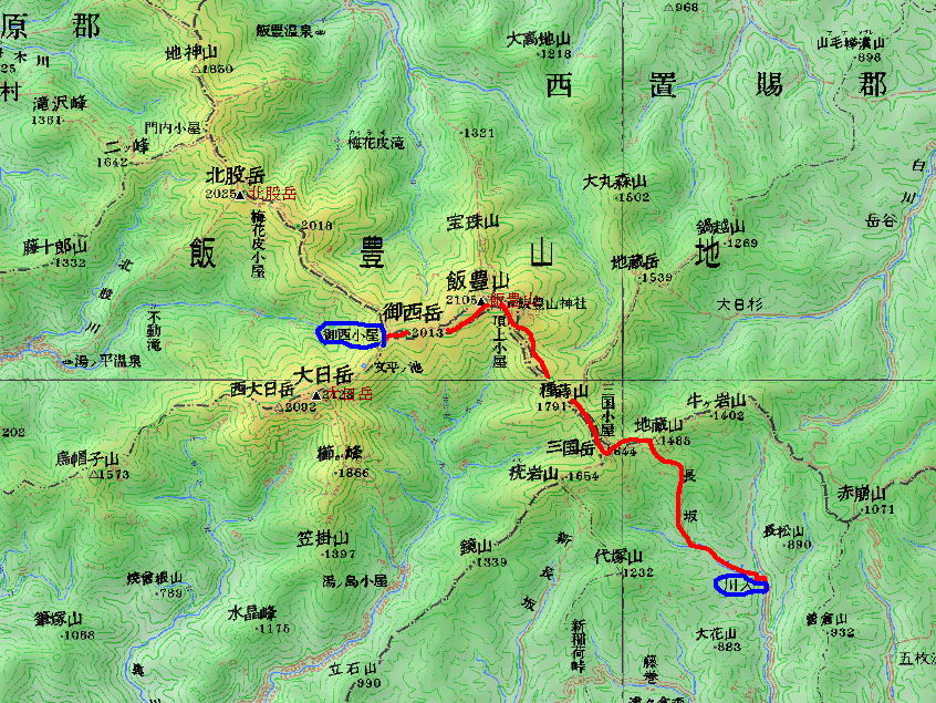 今回のコース 川入〜三国岳〜飯豊山〜御西岳 往復