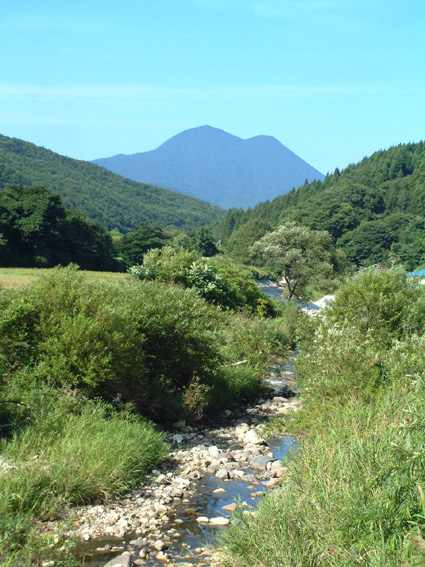 只 奥に二つのコブを持つ二岐山の姿が清々しく水枯れを補ってた