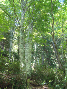 崩れた道を怖々と覗き込む 二岐温泉より登山口まで歩く 登山口に着く 荒れた登山道 ブナ林が続く サンサンと降り注ぐ太陽 ![]() 御鍋神社の道標 鍋が奉られている御鍋神社 ![]() 雲一つない空 秘湯大和館