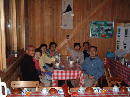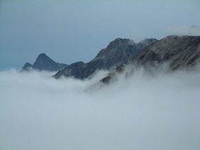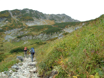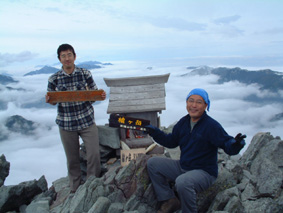 ![]() 草紅葉の始まった登山道 坊主岩を越すともうすぐ其処に槍が ![]() 山頂より三俣蓮華岳方面を望む 小槍 越しに見る漂う雲海 NOBUさんと眼下に槍岳山荘 祠の前でご機嫌のSUMIさん ![]() 沸き上がる雲 東鎌尾根の稜線にはヒュッテ大槍が ![]() 山頂より常念岳 穂先より降りる二人(手前は尻餅のSUMIさん) ![]() ヒュッテ大槍に着いたNOBUさん・SUMIさん・SEI ![]() 雲のジュウタン下界は雨かと前穂の頭 槍見河原で会った名古屋のグループと同宿(カンパ〜イ) 22日AM6:40槍沢ロッジを出発 小高い木々に被われてる登山道で展望が無い 槍沢小屋跡に着くと進むことが出来ない位のテントが張られてた 水俣乗越分岐 辺りになると紅葉の始まりで色づく木々や草で眩しい輝きの山肌が出現する 大曲を過ぎると急坂の始まりだ 休む回数が多くなる高度を上げて進む お花が綺麗だそしてナナカマドの紅葉 ジグザグに登る道 坊主岩で小休憩を取る 右には殺生ヒュッテ 急坂の先には槍ヶ岳と山荘が目の前に見える 槍の肩にはAM11:05到着 直ぐに穂先に登るが 多くの登山者の為に進まず岩に持たれて 待つ時間が多い 梯子とクサリに助けられて山頂に着く 山頂からのパノラマは うねる雲上に見せる峰々 360度の展望これは圧巻と息を呑む・・・ とぎれる事の無い登山者の為に長居は出来ない 未だ山頂の興奮冷め止まないうちに降りる・・・焼付く展望の数々を胸に抱き 肩まで降りて小屋で休憩 生ビールとカレーを注文して満足の時間が過ぎてゆく ヒュッテ大槍にはPM2:05到着 フロントには若いお嬢さんがおり 優しい言葉と笑顔のお迎えに北のアルプスの 満足感が大きく膨らんだ 小屋で食事までの時間を楽しんでると 槍の肩で約束をした名古屋の5人のパーテーが 遅くなりましたと歓喜のの再会 楽しい時間の始まりが此処に・・・ 小屋には単独登山で神奈川のTHさんと埼玉の元気なお姉さんが意気投合 山談義に花を咲かせて つい時間が過ぎるのを忘れる 食事の時間そして許されるギリギリの時間まで語り明かした 次のページへ |