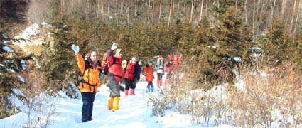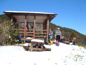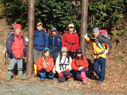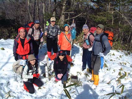 ![]() 登山口にて 左からTAKE・TETU・Sho・NOBU・HIRO 前列左からKOBA・MAKI・SIN・ ![]() モミの木の巨木林 南の山も残雪の歩きに 左からSIN・KOBA・MAKI ![]() 山頂にて(展望が無い) ![]() ロマン広場の展望(中央が三森山) ![]() 太平洋の眺望 ![]() 東屋は雪化粧 食べきれない程の食材です ![]() KOBA&SIN 煮込みうどんが美味しいHIRO・TAKE幹事有り難う ![]() 2時間の休憩を楽しみ下山の途につく(^^)/~~~(^^)/~~~ ![]() 参詣清水 福島県大熊町の坂下ダム登山口より登る、太平洋に近く暖かい山あるきでした リハビリ登山も3回目 ハッカ山のメンバー9人の楽しい行動に足の痛みも忘れてしまう 風も無い冬には珍しい穏やかな日、太陽の日射しを全身に浴びて進む 登山口直ぐに杉林の登りで 今回の登山道では一番の急登になる 日射しが時より差し込む中 残雪の道を気持ちよく登る、1時間位あるくとモミの木の林になり 大きなモミの木が山の歴史を語りかけてくる、此処はかって塩の道として多くの人が行き交う 重要な道であったと言い伝えられてる 左右が灌木林になり時折、遠望が可能に成る、参詣清水を左に見て巻き道を山頂に向かう 右にポッカリと空間が!!望洋台である太平洋を一望でき暫し足を止める事になる場所です 望洋台を後にして間もなく稜線のピークに、山頂かと思いきや偽ピークでした 次に現れたピークTAKEさんが此処が山頂と自信満々?? これも偽ピーク、三度目のピークが山頂でした 山頂は展望が無く記念写真を撮り直ぐにロマン広場のある展望台に下山 30分で到着、下山途中は木に積もった雪を揺すって悪戯のTETUさん雪まみれのNOBUさん 登山を2倍楽しくする名場面でした ロマン広場に着く早々みんなでカンパイお疲れさんと喉を鳴らす 用意されたテーブル一杯の食材、幹事のTAKEさんHIROさんが手際よく準備に係る 辛みの強いおでん、大好評でした そしてホット赤ワインや煮込み雑煮やうどん 最後に餅を入れて食べる、2時間にわたる大宴会でした ロマン広場を後に参詣清水に着く、あとは来た道を下るだけである 午後に成っても太陽は照りつづけ全てに満足する冬の一時でした、9人のメンバーの合い言葉は 本当に楽しい登山でしたと!!帰りは夜ノ森に在る温泉施設で汗を流して帰途に付きました。 9人の楽しい山旅を有り難う 次も楽しみましょうね・・・SEI
