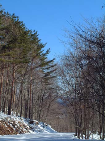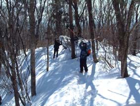 蓬田岳の稜線 今回のコース ![]() 抜ける様な素晴らしい透明度の青空(登山口より) 蓬田岳のピークは稜線の陰で見えない 新雪を踏みしめて歩く音がキュキュと聞こえる ![]() ホワイトボードに書いたような空間と林 ロープが張られてる急登 登りきった所で休憩TETU・SUMI ![]() 大きな岩に守られて祠が奉られていた ![]() 山頂に在る神社で一息、ピークはもう少し 大岩の在るピークより阿武隈山脈 ![]() 北西の方向には那須連邦 茶臼岳の煙がゆらゆらと上がるのが見えた ![]() 大岩の上にTETU・SUMI・SEIの三人高いところが好きな??です。 ![]() 山頂より平田村 青空に突き出るケアキの枝 間もなく新しい命が芽吹く ![]() 2時間20分の休憩後に下山 福島県須賀川市平田村の登山口より独高の山 蓬田岳に暖かい日射しの中 登る 蓬田レクリエーションの森に車を止め、石の鳥居をくぐり山頂を目指す 杉林の薄暗い登山道には小川があり湧き水にコップが置かれていた 下山時に登山者と遇い話を聞くと、湧き水は有名で在ることが解った 初めから登山道は急登で雪と氷に足を取られ滑りを楽しみながら登る、上を見上げると抜けるような空から 木々に燦々と太陽の光が注がれ、影が水墨画の様に雪面に映された様に目を奪われる 途中数名の登山者と遇う、皆さん元気で既に山頂を後に下山 登山道には所々にロープが在り滑る足元を補てくれた 照らされる雪面の歩きは汗が吹き出る 防寒着脱ぎ襟元を開けて休憩 山の恵みに感謝の一時でした 山頂の手前に大きな石に抱かれる様に小さな祠が奉られている 祠を左に見て進むと山頂に在る菅船神社に着く、お参りを済ませピークの広場に辿り着いた 山頂は独高の山の為 遮る物が無く 那須連邦の一角 茶臼岳の煙がゆらゆらと上がるのが見え 北には一切経山や吾妻山・飯豊連邦を望み視界を欲しいままにする事が出来た 広場で早速カンパイ持ち寄った食材で2時間強の宴会と相成る 大岩に登り勝ち誇りのポーズ 素晴らし笑顔が写し出される瞬間に心ときめく 下界に平田村が雪化粧と共に共存、山間のコントラストが綺麗だ 山頂近くに構えるケアキの勇壮 澄み切った冬の大気に放される放射線状の枝が 限りなく透明な青空に浮かんでいた 流れる様な時は短く感じ、惜しむように白いピークを後に下りの山道を進む TETU・SUMI・SEIの思いでを記録に残す事が出来た。