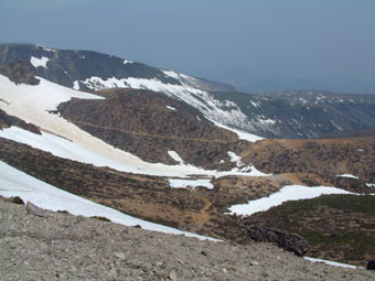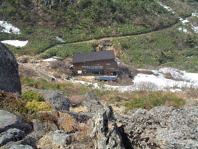 ![]() ゴンドラ終点に在る登山道入り口の道標 残雪の中 山頂(中央の凸)を望み歩く ![]() なだらかな山容の安達太良山 ![]() チョット・・・休憩 青空の下で ![]() 冬期間に使われていた目印の竹竿が道標に括られていた 和尚山への稜線(奥に見えるのが和尚山) ![]() 山頂で左から INO・SEI・KAZU ![]() くろがね小屋へ続く登山道が中央に 奥には荒々しい鉄山の稜線 ![]() 雪渓の上にKENさん 急斜面でダイヤモンド走行の目印を置くNOBU ピッケルによる制動訓練 ![]() アイゼン歩行や滑落停止訓練 ![]() 間もなくくろがね小屋へ 岡部会長が先頭に後方を歩くメンバーの姿が見える ![]() 登山道より眼下にくろがね小屋 小屋の中でくつろぐ 左手前からNOBU・OKABE・KAZU・INO・KEN ![]() 下山道より箕輪山 ![]() 左からHAYASIさん・NOBUさん OKABE会長 ![]() 奥岳駐車場に着く1km位手前の道路左右にはカタクリの群生地帯が在る 山頂直下で2時間40分にわたる雪上訓練は初めての試みで在り 岡部会長 NOBUさん ご指導有り難うございました 充実した一日を過ごせてメンバー全員が満足したと思います これからの登山行動に力強い経験が出来たと思います 有り難うございました 参加者 OKABE・KEN・NOBU・KAZU・INO・SEI