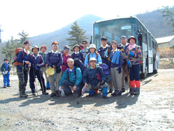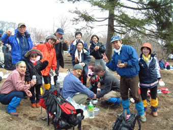 奥の山のピークが山頂 47名が参加