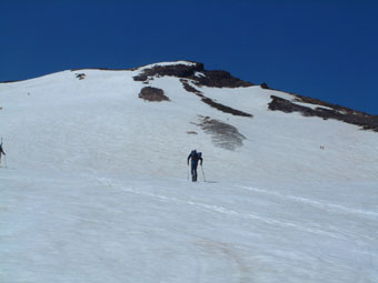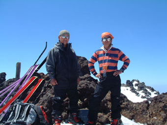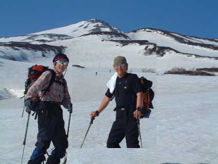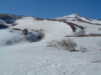 鳥海山に山スキーで来たのは初めてです 郡山を2日のPM7:00出発〜祓川駐車場に12:00到着した 以下同行したShoさんの記録です 5月2日、19.00郡山予定通り出発 東北道、古川IC〜R47 R108の入る所が分からず そのままR47にて新庄へ鳥海町より祓川へ 登って行くと 両側、雪の壁 駐車場に24.00着 すでに十数台 空は満天の星空、鳥海山がしっかり見える。 早速宴会1.30仮眠 5.30Sho起きる、晴れ 風無し。目の前のバーンに圧倒される。 [山が逃げる]とSEIを起こす。駐車場にて Sho〜 安達太良で会った須賀川の人に会う SEI〜東北メーリングの仲間に会う 6.30登山開始 途中郡山からの3人組みに会う 頂上着10.40 宴会 どんどん登って来る 12.10下山 この広いバーンをどの様に滑って降りるか 迷う、もったいないと思いつつ滑りはじめる 雪質はザラメ系で滑りやすい、祓川ヒュッテ14.40着 駐車場へ 車でごったがえしている。 瀬見温泉へ民宿古木屋さん だんなさんの採った山菜、鮎、かじか等そして地酒 楽しかった鳥海山、瀬見温泉でした。 SEIさnありがとうございました。 |