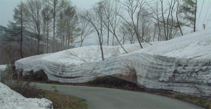 道路の両端は雪の壁