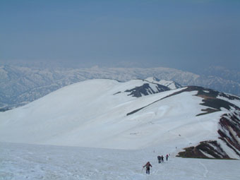 前回は見事に敗退をした月山 今年二度目の山スキーである 素晴らしい天候の中 大斜面を滑降出来た。 以下 同行者のShoさんの記録です 5月4日、新庄、瀬見温泉、民宿、古木屋 朝、4時起床、熱い〜温泉に入り前夜頂いたおにぎり 弁当を食べる。 5.00 リベンジ 月山へ出発 晴れ R47を新庄へ戻りR13を尾花沢方面、途中より 寒河江方面へ高速道路みたいなすばらしい道路が続く チェリーの白い花が満開でまぶしい。 その中に桃のピンクの花が。 若い2人の山スキーヤー歓迎するかのように 姥沢駐車場着7.15 リフト7.00より運転 8.00登山開始、姥ヶ岳の先鞍部へ斜登行 稜線へ 前回のリングワンデリングの場所を確認しながら 風がすこし強い、鳥海山望めず カジ小屋の下でスキーをデポ 10.00頂上着 羽黒山側より地元の方々十数名 朝4.00より5合目から 6時間の登山。わたしらは2時間で疲れた。 11.30下山開始 登り返さないように 右に〜方向を 取ながらリフト終点へ、沢を滑り駐車場着12.00 志津温泉へお風呂に入ると仙台から来た山スキーヤーに会う 2日、鳥海、湯の台コース 3日、鳥海、祓川コース 本日月山と おそれいりました。 生ビール&山菜そばをたべ郡山へ Sho運転 居眠りしながら郡山着18.00着 SEIさん3日間ありがとうございました。 GW 鳥海山が非常に印象的でした。 |