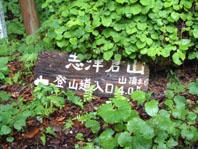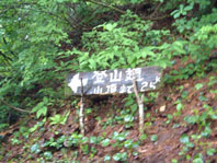 雨で滑る登山道 頑張れと励ますように あと2.5kmの道標があった ← |