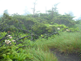 ガスで展望の無い山頂へ長居は無用と五分ほどで下山