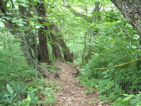 | ブナの二次林と思う → 山頂の東の面はブナ林に展望を奪われてる |