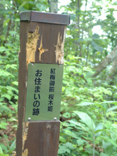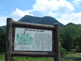 ![]() 登山道入口の案内板 と 後方の御前ヶ岳 |
