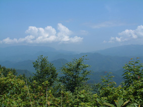 山頂は広く平らな草地で北方面だけ展望があり他方は林に遮られ展望が無い