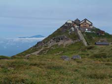 ![]() 湯 殿 山 月 山 羽 黒 山 ![]() 左上が月山山頂 右の小屋が鍛冶小屋 ![]() 石積の登山道 避難小屋手前の梯子場 ![]() 装束場の分岐 近くを流れる渓流 右中央に白い点(避難小屋) ![]() 熟したイチゴが美味しい ![]() 装束場の分岐を過ぎたコルより遠く飯豊y以東岳が見える ![]() 湯殿山の全貌 姥ヶ岳を左・中央に湯殿山・右に品倉尾根 ![]() ![]() ![]() 月山山頂で KEN・Sho・ またShoで(^-^)東京から来たシズカさん ・Sho・SEIです 後方に鳥海山 仏生池小屋前でSho 牛首より鳥海山 ![]() モックラ坂より鳥海山 木道より鳥海山 ![]() 仏生池小屋と鳥海山 仏生池より鳥海山 ![]() 夕暮れの鳥海山 ![]() 雨の日が続く中 晴れの予報を信じて出羽三山に行く 30日早朝4時に郡山を出発 東北道〜山形道と進み湯殿山にAM6:15分に到着 誰も居ない駐車場に車を止めて6:30に車道を登山口に向かう 湯殿山はAM8:00からの開門 静かな湯殿山神社の脇を通り渓流に泳ぐイワナを眺め雨に濡れた登山道を登り始めた 登山道の岩が滑る 高山植物に見とれてペースが落ちるShoとSEI 湯殿山の登山道はあまり使われないようで誰にも会わない ただ刈り払いがされてて歩きやすい 良いコースだ 月光坂の急登に係る梯子を登りきると避難小屋が現れる 綺麗な小屋だ小屋の中には水道が引かれてる 冷たい水が蛇口から!! トイレも完備してて登山者やお参りをする人には有り難い 装束場の緩斜面はお花畑だ!!白・ブルー・黄色・ピンクと咲く山の花 誰もが心を奪われるだろう 姥ヶ岳を正面に見て程良い汗をかき登る 青々とした品倉尾根は優しい線を描き母なる愛情を感じさせる 左に落ちた谷に目をやれば小さな池が点々と池を囲むように植物が生い茂る 登山道の地竹の中を覗き込むと赤く熟したイチゴがいっぱい実を付けてる 早速 熊さんご免なさいと頂く ん〜〜〜〜美味しい 数十個を頂きました (^_^) 姥ヶ岳の分岐に出ると月山スキー場から登ってくる人が凄い列を成してる この中に入ると大変とShoさんと話す が 写真を撮りながら登る私達に 東根一中??の数百人が直ぐに追いつき抜いて行く 他の登山者を入れたら何百人居るのか!! 此処はメーンコースなのだ 牛首より鳥海山を眺め 振り返ると大朝日岳や以東岳 その左奥には飯豊連峰と 余すところ無く山々が顔を見せてくれた 麓には月山湖や志津温泉も視界に入り高曇りの天候のプレゼントである 今日の泊まりの鍛冶小屋の脇を進み月山神社へ 500円の参拝料を治め神社で祈願 日頃の厄を払う (>_<) 神社の後に周り楽しみの時間が来る 宴会の開演ダ!! 360°のパノラマを肴に冷えたビールで乾杯 しばらくすると其処にスキー場から登って来たKENさんが現れる 私の頭を見て O〜〜眩しいと憎まれ口をたたき 待ち合わせた3名が揃い飲み直し 山談義といつもの会話に笑いが飛び交う ”Shoさんが神社の方を見て言う 綺麗な女性が写真を撮ってる” ”SEIが話す後から素敵な彼氏が現れるよ” そんな話を裏切り女性は一人でした 挨拶を交わし話すと志津温泉でシーズン中アルバイトをしてると!! 東京から来たシズカさんとShoさんのツーショット 記念の写真をカシャ 有り難うございました・・ シズカさんHPに寄りましたらカキコしてね (@_@) KENさんは1時間位の滞在で下山(愛する妻の元に帰りますと???) 11:15分〜14:30分のロング滞在でした 未だ小屋に行くには早いため仏生池まで行くことにした 途中 峰の変化や鳥海山の映り変わりに満足 こんな山旅も良いもんだとShoさんと語り合う 仏生池小屋でまだ飲み足りないのかビールを注文 再び飲む呆れた二人です 鍛冶小屋には16:40に入る 管理人の優しい言葉に迎えられた シャワーを使う事が出来る有り難さと 贅沢な個室に案内され 山菜料理の美味しい夕食に満足の小屋泊まりに成りました 31日 7:10小屋を出る装束場の避難小屋に8:10駐車場に9:30と雨の中を 足早に下山した 麓にある湯殿山ホテルで入浴後〜羽黒山へ 予定の三山を周り帰途に付く Shoさん KENさん シズカさん 鍛冶小屋の管理人さん有り難うございました 贅沢な山旅に感謝いたします ・・・・・・SEI・・・・・