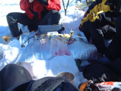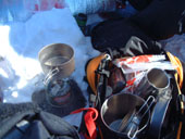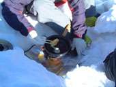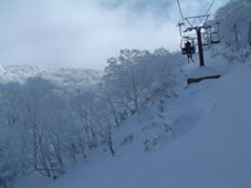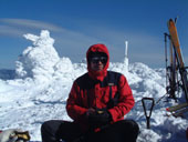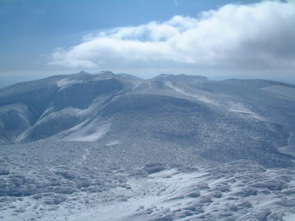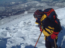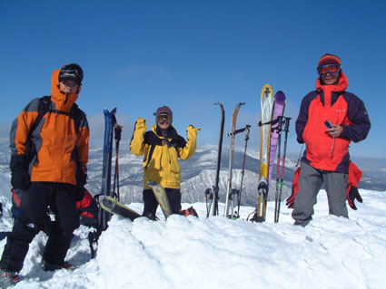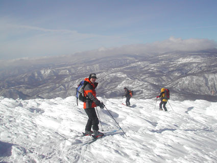 ![]() 白い世界の樹氷達 ゲレンデから磐梯山 ![]() ゲレンデからの展望 ![]() チョット一休み 左から すかがわ2嬢・OHGA・NOBU・Masa 後方の山 左奥から 西吾妻山〜東大巓〜東吾妻山〜一切経山〜吾妻小富士 高山1804.8m ![]() 山頂からの展望 左のピークから 矢筈森〜鉄山〜安達太良山〜船明神 中央のコルに黒い点(鉄山小屋) ![]() 立体感がありモンスターが動いてるように見える?? ![]() 山頂にて 左から OHGA・後に赤の?NOBU・すかがわ2嬢・Masa ![]() NOBU&すかがわ2嬢 (Masaさん提供) Masa&すかがわ2嬢 ![]() OHGA〜すかがわ2嬢〜SEI (Masaさん提供) ![]() 山頂の風景 (Masaさん提供) ![]() ![]() ![]() ![]() ![]() ![]() 山頂の休憩 熱めの燗が胃袋を起こす 決まってる ぜ (^-^) すかがわ2嬢 午後の斜景と太陽 ![]() コブを滑る 左 Masa・OHGA ![]() 午後の空に浮かぶレンズ雲 箕輪山は左足靱帯を切った思いでの山 (>_<) 5人のメンバーで山頂までスキー登坂 ゲレンデには岡部会長が待機(飲んでるのかな?)とKENさん 山腹は積雪が少なく山スキーには早いようで在る コブを避けトラバースをして登る 初めての山スキーはOHGAさん ベテランのMasaさんはシールが利かない様で苦労をしてる SEIは去年の苦い経験(シールが利かない)で新調したシールで快適 すかがわ2嬢さんNOBUさんは淡々と登る リフト終点から100°方位に直登を試みるがコブと傾斜がじゃまをしてダメ!! モンスターの間を斜めに進む 休憩時にスキーを外しツボ足で立つと太股まで抜ける雪面 表面はクラストしてるが未だ安定してないようである 青空の下 遠望を楽しみ登るメンバー小休憩を挟み11:35分に山頂に着いた 山頂からは360°の大展望 飯豊山も雲の上に顔を出す 写真に治めるが雲とピークが重なり輪郭が出ない デジカメの弱点は遠近感と白のコントラストと思いながらも便利さが優先して使用してる 山頂は弱風 雪のテーブルを作り食事 まずは中から暖めようと熱燗で一杯?2杯<?三倍・・・・数杯 (*^_^*) 美味しく頂く 続いてMasaさんの特製チーズ焼餅が出来上がる(焼餅の上にチーズこれを海苔で包む) Masaさんの話(家で焼いたときは旨くいったのだが (>_<)・・・)でも旨かったで〜〜す テーブルの上に お嬢様??が持って来てくれた漬け物やオレンジ 数分後には凍みオレンジにブロッコリンも凍りつく これが不思議と美味しいので在りました 皆さんの持ち寄った食材で満腹 下山の途に付く 滑降はコブに悪戦苦闘 転倒を繰り介し雪だるま (^_-) 予定時間を一時間オーバーしPM4:00駐車場でした 駐車場で待ちくたびれた岡部会長と合流 沼尻温泉に寄り入浴 酸性の風呂で暖まりご機嫌が良好(お酒を頂きました) 弱風の晴天下で山スキーを楽しんだ箕輪山登山でした ゲレンデの会長・KENさん・Hiromiさん NOBUさん・OHGAさん・2嬢さん・Masaさん またいぐべない(また行きましょう) 宜しく・・・SEI