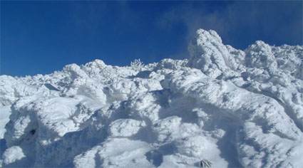 山頂の道標が交通整理の人影の様に凍り付いて居た![]() 山頂の展望 AM11:35 同行者 NOBU・OHGA・すかがわ2嬢・Masa・SEI |