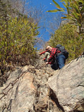 ![]() ![]() ![]() 尾根コースの道標 御神体滝の前で (^O^) 左からSUMI・KEN・HIRO・Kosi・Mikaちゃん・Fuku・Hiromi・Masa・TETU 岡部会長 ![]() ![]() 最初の難関??(^_-) 御神体滝 ![]() 変化に飛ぶ岩場が多い 白く見える所 滝が凍り右端に流れがある ![]() ↑ 男岩と女岩のコルに架かるクサリ場 ↑ 女岩のクサリ場 HIRO〜Hiromi〜TETU ![]() 女岩のピークで昼食 Kosi〜Fuku〜HIRO〜SUMI〜Hiromi (^O^) Mikaちゃん Masa〜KEN〜TETU〜岡部会長 ![]() 太平洋の眺望 吾妻連邦を望む? ![]() ![]() ![]() ![]() 昼食の一時(女岩にて) ![]() 男岩の祠 女岩(女体山) ![]() 巨大な岩が天を指さす(登山道より) 雪が残る登山道(岡部会長) ![]() 月山神社 Mikaちゃん〜Kosi〜KEN〜Fuku〜TETU〜SUMI 岡部会長〜Masa〜Hiromi〜HIRO ![]() 神社で祈願を済ませる 元気なMIKAKOちゃん 例会登山報告 投稿者:ken 投稿日: 1月19日(月)16時31分22秒 倶楽部の皆さんこんにちは 昨日の一月例会登山の報告です。以上 幹事の佐藤健二さんの報告をUP致しました。 |