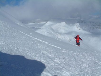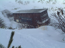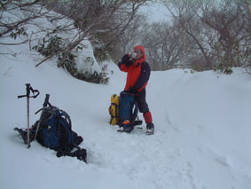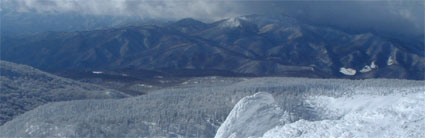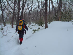 ![]() 奥岳登山口 一歩一歩 新雪を踏みしめ ![]() 勢至平の分岐にて ![]() 峰の辻分岐 塩沢分岐(後方にくろがね小屋が見える) ![]() ![]() くろがね小屋の夕べ 右端にK会長 埼玉県 蓮田山の会のメンバー(左端は別??TAKEで〜〜す) ![]() くろがね小屋 峰の辻分岐 大雪原をモクモクと登るTAKE ![]() 新潟から来た山スキー 一行の谷登坂 ![]() 山頂より和尚山 ![]() 山頂より後方 鉄山&TAKE ![]() 山頂より磐梯山 ![]() 山頂より後方 船明神 ![]() ![]() 山頂のSEI・TAKE ![]() 風 紋 ![]() 樹氷の唐松林??中央より下 ![]() モンスターとTAKE(仙女平分岐より上部) 正月最後の休みを利用して安達太良山へ 時折強く吹く風 小雪が舞う登山道 トレースが案内してくれる道 そんな3日の午後12:20奥岳登山道をTAKEとSEIが登り始める 前日に偶然に会い決めた山行きTAKEさんは2004年の発登山に成りました スキー場は過密状態のゲレンデ 駐車場も満杯で正月休みを名残惜しむように繰り出した人人 いつもは動いてるゴンドラが休し強風のためと思う 午後の出発の為か登山者には会わない 勢至平の分岐を過ぎた所で3名の下山者とすれ違うだけでした 小屋の状況を聞くと40名くらいの泊まり客らしい 話をすると偶然にも2年前に くろがね小屋でお会いした福島のMさんでした・・・しばらくぶりですと思い出を語る (^-^) くろがね小屋に着くと良い雰囲気で盛り上がるグループが居た 私達も食材をテーブルに準備 部屋に荷物を置き仲間入り 隣同士に盛り上がったのは 埼玉県から来た蓮田山の会のメンバー6人 山談義に話が弾み時間を忘れた一時と成りました 二度ほど温泉に浸かりPM8時に寝る 翌朝AM5時起床 早出の人達は準備に架かってた 外はガスで視界が悪い ただ天気予報では晴れそうであり期待できる 蓮田山の会のメンバーはAM7時過ぎ??に山頂に向かう 私達はのんびりと過ごす 朝湯に浸かり準備も整いAM9:00小屋を後にした 峰の辻分岐まで登ると視界が開け山頂がぼんやりと目に飛び込む どうやら私達の予報が当たったらしい(願望) 谷に目をやれば新潟の山スキーのメンバーが綺麗に列をなして登る姿を確認出来た 雪が少ないと言われる今年の山 山頂からの大斜面はスキーを持ってこなかったのが悔やまれるような絶好のコンデション 次回は山スキーにと思いを馳せた 途中で先行者の蓮田山の会のメンバーが下って来た 展望を心配して聞くと満足の山頂でしたとメンバーの笑顔が!! 大パノラマを写真に治めましたと下山して行く姿が安達太良山の雪原から小さく消える また何処かで合いましょう蓮田山の会の皆さん 連絡下さいね・・私達も埼玉へ (^_-) 山頂は強風で氷の顔面攻撃と突き刺す寒風 記念写真を撮り撤退 風よけを利用しビールで乾杯した が 寒くて半分も飲めませんでした (>_<) 下りはテンポ良く 時々抜ける足元 汗がにじみ出る 強い光線に目が痛い(サングラスを付ける) 仙女平分岐手前で5名の登山者と遇う 今日はゴンドラが動いてるようだ 少し下ると若い二人ずれスノボーを抱え登って来た 坪足の為 歩けないと話す 頑張れ若いのだから絶好の大斜面は直ぐ其処と言うと そうですねと素直な二人 好感の持てる若者が登って行った 薬師岳の山頂駅(ゴンドラ)で酎ハイを飲み休憩する あとはゲレンデを すたこらさっさ と下りるTAKEとSEIの正月登山でした これからは山スキーが主に成るがTAKEさん今年もヨロシクです ・・・・SEI・・・・ 蓮田山の会の皆さん元気に今年も山を愛してください またお会いいたしましょう