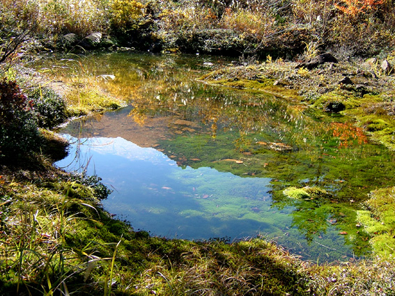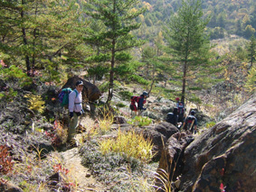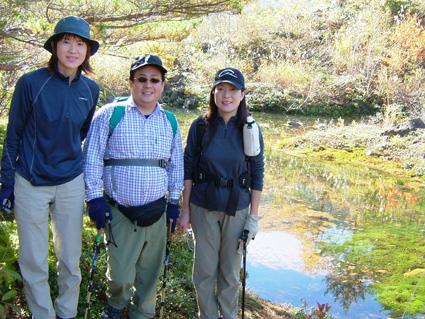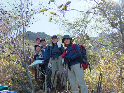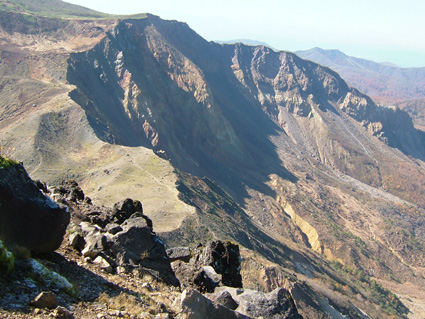 ![]() 裏磐梯登山口(裏磐梯スキー場)をスタート!! Mihorin・Hirorin・ojyou・AN・FURU・MASA ![]() 銅沼の分岐 分岐を過ぎると鏡のような池塘が現れた 記念写真のMihorin〜FURU〜Hirorin 快晴の中 緩斜面の登山道を進むメンバー 両脇のMihorin & Hirorinは独身であります (*^_^*) 山に理解の在る男性を募集中 要望事項多々あり m(_ _)m 詳しくは HP管理者まで宜しく ![]() 藪道にある道標を過ぎると噴火口の稜線が確認できる 逆光で輪郭がハッキリしないが荒々しい山容は裏磐梯登山口を訪れた人のみの眺望である ![]() 火口原に下り岩のゴロ道に出ると味の在る道標が目に付いた 左からAN・ojyou・Hirorin・FURU・Mihorin・MASAの6名が青空の下で大自然の歓迎を!! 火口原は広い大地 ガスが架かれば行く手は??地図と磁石が無ければ無理と語りかける ![]() 裏磐梯登山口と川上登山口の分岐 此処を過ぎると急登の連続 手すりの付いた登山道 正面に天狗岩を見ながら登る 左右の灌木林には季節の贈り物キノコが顔を出してる クリタケやムラサキシメジを少々頂き晩のみそ汁の糧にしました ![]() 櫛ヶ峰に登るMihorin 櫛ヶ峰より磐梯山 1818.5m ![]() 奥に赤埴山1430m 噴火口の外輪 次のページへ |