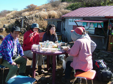 ![]() 櫛ヶ峰に着いた Mihorin & SEI 他のメンバーは一足先に弘法清水へ 私達が山頂で休んでるときは皆さんは小屋で休憩 山頂は360°の展望 飯豊山の雪も有視界OK 近くの峰越しには朝日連峰が覗ける 眼下には沼の平 火口原 猪苗代湖 檜原湖 小野川湖 秋元湖 と麓の町まで望め 磐梯山山頂には多くの登山者を確認できた。 ![]() グランデコスキー場が西吾妻山の山腹に描かれ宝の山からの遠望を楽しむ 分岐に着いたMihorin余裕の笑顔でポーズ (^o^) ![]() 弘法清水小屋で昼食 小屋越しに磐梯山のピーク 青空が眩しい 弘法清水小屋のご主人に 総勢7名がナメコ汁をご馳走になる ご主人様 奥様 何時も本当に有難うございます ![]() 下山前に記念写真 後方は櫛ヶ峰 櫛ヶ峰の噴火壁 ![]() 川上コースを下る 落ち日に染まる秋模様 黄金色の木々が光を跳ね返す 時を惜しむ晩秋の囁きがこだまする 登山道に落ちてるアケビの実 近づく冬を感じる 23日の紅葉宴会に続き24日は磐梯山登山 総勢12名の参加 (登山者は7名) 笑いと食べ道楽の二日間 皆さんお世話になりました 之からも宜しくお願いいたします。 ・・・・SEI・・・・ 戻 る |