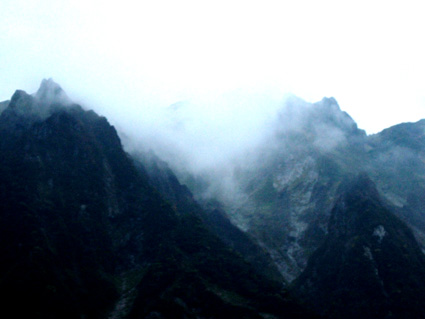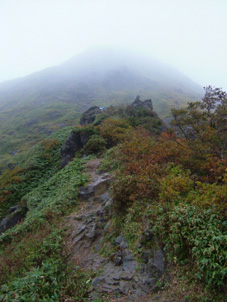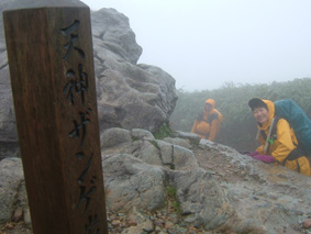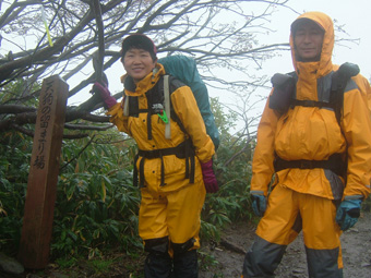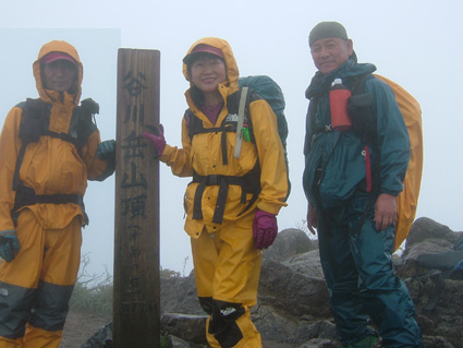 ![]() 夕暮れのマチガ沢 一の倉沢 ![]() 一の倉沢 2日の夕方 谷川岳登山口に到着 明日の天候が不安定なため一の倉沢まで足を延ばす 日が落ちる前のマチガ沢と一の倉沢を写真に治めることが出来た 翌日は天気予報の通り 一日中雨でシャッターチャンスは無かった。 ![]() ![]() ![]() 駐車場でテン泊を楽しむMASAさん&Ojyouさんです お酒を飲むのはSEI一人 可愛そうとOjyouさんが付き合ってくれた MASAさんはコーヒーで乾杯!! 登山口のOjyou・SEI・MASA ![]() 巖剛新道は登り初め沢が登山道に使われている しばらく展望のない林を進むと第一見晴台に着く マチガ沢が一望できる 峰に係るガスが谷川の壮大な岩峰を隠すように下りてきた。 揺れ動くガスの中から瞬間 顔を出してくれたノコギリ状の山容 ![]() 西黒尾根分岐より天神尾根 尾根伝えに見上げる稜線 分岐にてOjyou & SEI 視界が開けるように成るとクサリ場や梯子が在り 谷川岳のイメージが強く出てきた 本来ならマチガ沢の切り立つ岩壁が目の当たりに出来ることだろうと雨雲を見上げる 高度恐怖症のSEIは足元が見えなくて歩きやすいと強がりの一言 写真で見た山容を心に写し 見えない谷を見つめる姿が3つ !! ![]() Ojyou & MASA 並べたような岩が行く手を!! 山頂の道標 分岐を過ぎるとガレバの連続 大岩やザンゲ岩が続く 見えないピークを辿り登って行くと大きな道標が現れた 間もなくトマノ耳 1963.24mに着いた ![]() 岩場を登る登山者 トマノ耳でSEI〜ojyou〜MASA ![]() オキノ耳のMASA・ojyou・SEI (1977m) 肩の小屋でくつろぐMASA・ojyou・SEIオキノ耳まで足を延ばした 寒く視界がないピークを後に肩の小屋に着く 寒いからだを中から暖めるには温かいラーメンが一番と管理人の馬場さんにお願いする 笑顔の対応に何かご褒美を頂いたような温かさを感じる管理人の姿 ojyouがお湯を頂けますかと 訪ねると快い返事とMASAさんの食材にまで真心のお湯が注がれた 当然のようにお酒を注文するSEI メニューには無いのだが紙コップに分けて頂いた日本酒を 恵比寿顔にてアー旨いと注ぎ込む奥には五臓六腑にしみこむ感謝の味がありました。 ![]() 小屋を後にし階段状に整備された登山道を下る 此処でも視界は無い天神ザンゲ岩〜天狗のたまり場と下り 笹の山肌が終わる頃には木々の丈も身長を超すように成る 紅葉と笹のバランスが色彩を強調 大岩にてSEI・ojyou ![]() 避難小屋には多くの登山者が休んでいた 私達は休憩を取らずに下山 濡れた登山道の木々は表情を和らげ 残り少ない秋の日を承知してるかのように色つき始めていました。 天神平の分岐にてMASAさんが腹の減り具合に合わせるようにパンを補給 ojyouさんはポーズを作り 被写体に笑顔を振りまく和やかな下りになる ![]() ロープウェイの山頂駅は日曜日にも係わらず閑散としてる 冷たい雨に打たれた谷川岳登山も山模様の移り変わりと人情味あふれた多くの感動を頂き ロープウェイと共に最終駅に近づいていた。 ![]() 土合駅にて記念写真を撮りマチガ沢に止めてある車までタクシーにて行こうと乗り場に行くが タクシーは居ない 困り果ててると近くに居た年輩の男性が私の車で送りましょうと 思いも寄らぬ言葉をかけて頂いた 谷川岳登山に来て冷たい雨に打たれ展望のない尾根を歩き!! 空想の景色を眺め感激をし 肩の小屋で(TOPにリンク)管理人の馬場さんの人柄に触れ 下山後 心温まるお言葉と共にマチガ沢まで送って頂いた事は忘れることは無いだろう・・・・(@_@) 出合いと感動と人情を有難うございます 登山という1日だけではない1日に感謝致します MASAさん ojyouさん 馬場さん 送って頂いた優しい男性さん 有難うございます・・・また来ます谷川岳の地に・・・SEI |