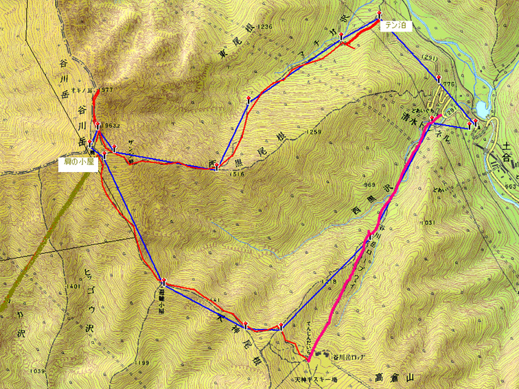 登り マチガ沢登山口 AM6:10〜西黒尾根分岐 AM8:05〜トマノ耳 AM9:50〜オキノ耳 AM10:05 下り 肩の小屋 AM10:40 (休憩一時間)〜AM11:40 天神尾根 AM11:40〜熊穴沢避難小屋〜天神平駅 PM1:10〜土合口駅PM1:30