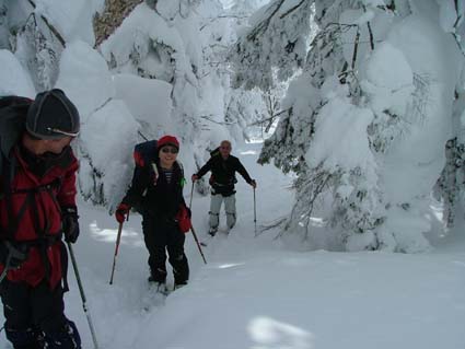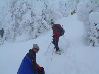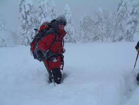 ![]() 団体さんの後を登る(圧雪されて楽です) 休 憩 Sho上とJoe ![]() 列をなし登るスキーヤー ![]() 大きなモンスターに隠れる ![]() ![]() ![]() ![]() 降りしきる雪雪雪 見る見るうちに埋もれる食材 ![]() 戯れるJoeとojyou ![]() 腰ま潜りラッセルする新雪(スキーを履いてます) ![]() Joeさん提供写真 埋もれて動けないSEI (腰まで抜けた空洞にスキーを外し脱出した) ![]() PM3:30分頃のJoeまだ余裕が在ったが?? 間もなく現実は訪れたPM5:??頃 ![]() 大雪の中 体力を付けるためモクモクと食べるShoとメンバーPM6:?? ![]() ゲレンデを滑り降りてグランデコセンターへ着く(*_*) 何事も無かった様にバンザーイ PM8:?? ![]() Sho〜SEIーすかがわ2嬢 無事に帰還して安堵の表情 (Joeさん提供写真) 新雪が1m位積もる山腹 西大巓に山スキーに訪れる 朝の内は日射しもあり稜線もクッキリと現れ予報が外れ好転したのかなと喜び勇んで登山開始 前を行く団体さんの御陰で圧雪されたトレースを使い順調に高度を稼ぐ 途中までは大きなツリーに日が差す最高のコンデションで上着を脱ぎ汗抱くの行程になる 1800m位まで登ると雪が深々と降りだし先ほど脱いだ防寒着を付ける 急変する天候にメンバーが話す 予報が当たったねと!! 山頂には12:30に着き休憩を13:30まで 既に山頂にいるのは私達だけ 180°方位に滑降下山の予定を尾根を谷側に下りコースを外れる トラバースして 尾根に出ようと試みるが腰まで沈む新雪にどんどん谷筋に 1650m付近で立往生 PM5時 小さな雪崩が発生 越える尾根は見えるが 勾配の在る深雪は身動きがとれない Shoさんがシールを付けて途中まで戻ろうと勇気の決断 1800mまで戻りGPSの軌道を確認しコースを270°にとり稜線を目がけてラッセルする Sho〜Joe〜すかがわ2嬢〜SEIと代わる代わる腰まで潜り力強いラッセルが続く 一人として慌てることなく落ちついた行動!! 非常事態(ビバーク)の装備(食料・燃料・ツエルト二張り・スコップ・ライト・等)が落ちついて 行動できた要因と思う。 尾根筋に出るとトレースを見つけ一安心し休憩をとる すかがわ2嬢さんの果物やパンなどモクモクと食べるメンバー 美味しい!! 途中で行動食をほおばりながらのラッセルでも体力減退が激しい・・・ ”体力限界前の休憩と補給は欠かせない鉄則と改めて思う。” 尾根筋のトレースを下るが雪で所々消えてる下り始めてから4時間以上が経ち 新雪は既に30cm位積もり行く手を阻むのでした PM7時過ぎにゲレンデに出る ゲレンデも新雪でスキヤーの残した跡も無く如何に大雪か 思い知ることが出来た ヘッドライトの灯りでゲレンデを滑り下りたのは PM8時に成ろうとしてた グランデコハウスに着き渇いた喉を潤すカンビールは 言葉にならない幸せな安らぎの空間に案内される時間になりました。 駐車場に残された一台の車 ビバークを余儀なくされてればと考えると 慎重の上に行動と判断をしなくては成らないと教えられた 冬山の1日でした Shoさん・Joeさん・すかがわ2嬢さん・素晴らしい判断と行動に感謝致します これからの登山に役に立つ教訓と致します ・・・SEI・・・ |
