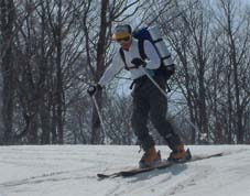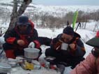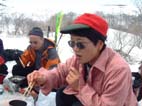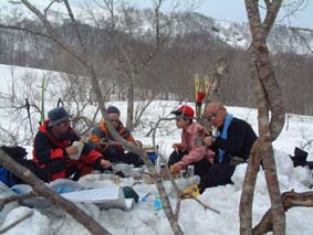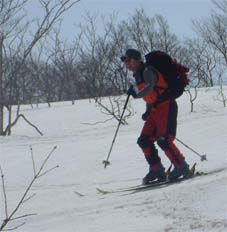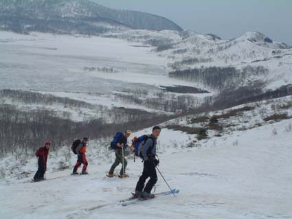 ![]() AN〜INO〜OHG〜Ojyou〜SEI リフト終点より後方は磐梯山 後方の雪景色は雄国沼を縁取りする小ピークの峰 ![]() シュプールを治めブナ林を滑降するメンバー 先頭から Ojyou〜OHG〜INO〜AN ![]() ![]() ![]() ![]() 滑り上手に見えるかな???(>_<) (@_@) (^_^) OHG AN INO Ojyou ![]() 雄国沼の堰堤 & 休憩舎 (くつろぐメンバー) ![]() 猫魔ヶ岳の連峰 ![]() 雄国山の展望台 ![]() 雄国休憩舎と雄国沼 滑降前のメンバー Ojyou・AN・INO・OHG ![]() ![]() ![]() ![]() ![]() ![]() ![]() 楽しい時間が来ました ![]() 夏道の登山道が現れるのは? 今シーズン最後の裏磐梯猫魔〜雄子沢コースへ山スキーに来た 猫魔スキー場は最後の滑りを楽しもうと大勢のスキーヤーがゲレンデに溢れていました。 リフト終点よりザラメの雪原を雄国沼へ向け滑り下りる 山頂付近は灌木林で 途中よりブナ林に変わる 間をぬうように右左と走るスキー 木々は新芽を膨らませて弾けそうに早春を待ちわびていた 雄国沼は氷りが解け所々に水面が出来 近寄ることが出来ない 間もなく新緑の鮮やかな山々の季節がやってくる 誰も居ない雄国休憩舎 私達は燦々と落ちる日射しを贅沢に浴びて一時の安らぎの世界に導かれた 沢や窪地の雪は解けて空洞に 中を覗くとコンコンと湧き出る水 磐梯山を宝の山と位置つけ檜原湖に恵をもたらしてくれた湧き水 自然の摂理に感謝致します。 休憩舎を後にハッカ山を目指すが露出した岩が行く手を拒む コースを雄国山に変え気持ちよく登るメンバー なぜか坪足で追いかけるSEI 稜線の所々に黒い山肌が現れて雪解けの早さを感じる 稜線より見下ろすと雄国沼や休憩舎 縁取りされた連なるピークが それぞれの思いを現して輝いていた 猫魔ヶ岳と雄国山のコルで休憩 持ち寄った食材に手が重なる 焦げたさつま揚げが美味しい 特に今日はビールが 暑い日は之に限る!! 心地よい春風 ? が通り抜けて行った 雄子沢の下りは緩斜面のため滑りが悪い 小枝が雪をはね除けて邪魔をする スノーブリッジが消えて沢越えが出来ない箇所が現れた ジャボジャボと沢を渡るSEI 冷たい!!靴に雪解け水が入る 見ていたメンバーが遠巻きをして沢越え 事なきをえた。 磐梯山のスノーシーズンは間もなく終わりを告げるかの様に 景観が変わっていた。 |