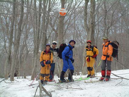 天候(曇り) 今回のコースGPS 山スキー6名