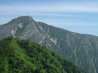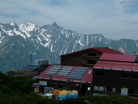 蝶ヶ岳ヒュッテ(後方は蝶の最高峰2677m長塀の頭)