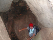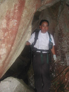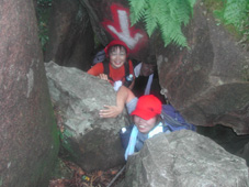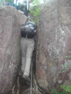 此処からMASAさん提供写真 ![]() 登山口の道標 ![]() 洞窟から出てきた 石沢 宗形 ![]() はさみ岩を通過するのは?? だれだ (*^_^*) ![]() 洞窟を出てきた HARA〜TAKE〜Joe〜TUKASA〜SEI 今日は長野県側から新潟県に移動 鉾ヶ岳登山口に到着 朝の出発が遅れ登山口に着いたのはAM8:30 予定より二時間半の遅れになる リーダーのJoeさんが登山ルートの変更を告げる 予定ルート手前の権現岳までと致します 皆さんリーダーの指示に従いAM8:50に登坂開始 道標の所に着くと なんと登山道が雑草で隠れてるではないですか!! え〜〜これって殆ど登山者が居ないと言うことだよね と 一様に話す ん〜〜でも行きましょう 珍しく先頭を行くSEI 初めから厳しい登りに汗が噴き出る 最初の休憩を白滝の道標が在るところで取る 数人で一杯になる狭い場所で吹き出る汗を拭うメンバー 飲む水の量も半端じゃない TAKEさんの汗はこぼれるように流れ落ちる 小さなバナナの様な実を付けた木 や 灌木の林の中を進む 此処からクサリ&ロープの登りが永遠に続くとは誰も解らない 岩場に張られたロープ 直登に下がるクサリ わずか1104mの山でこれ程までに苦労をしての 登りは皆さん初めてではないかと・・・!! 胎内くぐりを過ぎると 又 ロープが下がる所に出る 其処を登りきると白山権現様が奉られてる大岩の稜線に出た やれやれ (^-^) 見上げると登山道の上部が明るく見える いよいよ山頂か 張り切ってペースを上げる 其処には間もなく山頂の道標が待ちかまえて居ました (>_<) 殆ど視界がない登りとクサリ&ロープの連続 登山者が少ないのが解るような気が致します 山頂は360の展望の中 歓迎してくれたのは数千匹の羽アリで黒い固まりが 避雷針の下でうごめいて居る姿でした リーダーが用意してくれたドライアイスで冷やしたビールを取り出し 皆で乾杯 予定の鉾ヶ岳を眺めての昼食に満足の笑顔がこぼれる 一時間位の休憩後下山 慎重に岩場に張られたロープ&クサリを頼りに無事に登山口に着きました。 山頂からの展望と山の厳しさに感激できた権現岳登山 一人の登山者にも会わない静かな山あるき 素晴らしい新潟県に権現岳ありと伝いたい 帰りには麓の権現荘で汗を流し(入浴料¥310)帰途に付く 三重県から合流したShoさん長い道中ご苦労さんです 来月の穂高岳で又会いましょうね 権現岳で厳しい登りを体験出来た皆さんありがとうございました 二泊三日の全ての取りまとめ Joe幹事さんお世話になりました 素晴らしい例会登山に感謝 ・・・SEI・・・ 戻 る |
