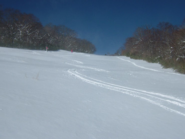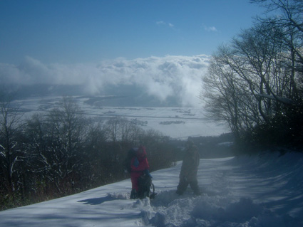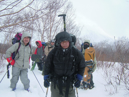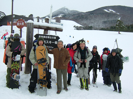| (@_@) スキー場にて(左から) ゲレンデを登る(Yosi君〜Yosinori君〜Take君〜Tosiさん) ↓ (^_-) Sato君・Yosinori君・爺ちゃん・Tosiさん・Taさん・SEI・Take君・Yosi君(間違ってたらゴメン) |