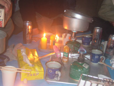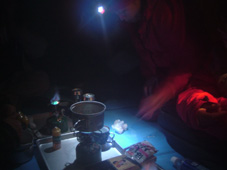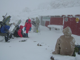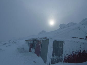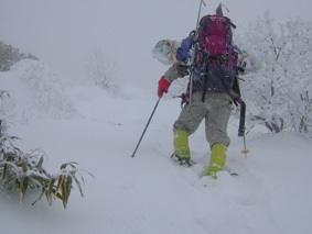 例年の今時期 夏道は雪の下(道標が出てる) ラッセルして登るメンバー ![]() 休憩(早くも右手にはアサヒBー?)(Taさん・Take君・Tosiさん・Sato君) ![]() 渋谷さん Taさんのザックは20数キロ) Yosiくん〜Take君〜Sato君〜Yosinori君〜Taさん Tosiさん 分岐にて(Taさん) 弘法清水に着いたメンバー疲れて座り込む ![]() ![]() ![]() 小屋の中では年末年始のお祝いを繰り広げる ![]() ![]() ![]() 元旦 弘法清水小屋を6時に出発 積雪不足でヤブ越え山頂へは7:20到着 途中で一瞬ガスが消えるが!!日の出は雲の中 ![]() 山頂にて Yosinori君・Yosi君・Sato君・Take君 前の黒いウエアーはSEI Tosiさん・Taさん (@_@) 弘法清水 太陽が微かに顔を出す(弘法清水小屋) ![]() 下山時に地吹雪で視界が消える (ゴーグルは凍り付き眉毛は霜柱に) ![]() 猿ダンゴでは在りません!!強風で岩にしがみついてるのです (スキーを外し下山するTaさん) ![]() 櫛が峰の稜線が瞬時浮かぶ ![]() 沼の平らまで下れば風が弱くなる Taさん・Take君・Sato君・Yosiくん・Yosinori君 ![]() オープン前のゲレンデに着く(猪苗代湖に厚い雲が垂れ込める) シュプールを残し下る ![]() 午後の川桁山の峰(山頂は雲の中) 年末年始登山(磐梯山)に31日AM6:45郡山を発つ 天気予報では日本列島が大荒れ 気象状況では下山しましょうと渋谷さんの家族6名+SEIが弘法清水を目指す 登山口では未だ晴れ間も見えたが赤埴山をトラバースする頃は雲に覆われた磐梯山 次第に雪が降り出し新雪が行く手を邪魔する 渋谷さんの家族は重い荷物を物ともせず背負いラッセル力強く進む SEIは積雪不足の夏道を山スキーで登るが悪戦苦闘 スタミナ切れでペースダウン 磐梯山のこの時期に今までにない雪不足 山スキーは無理でした 沼の平らは渡ることも出来ず夏道を行く! 櫛が峰のコルも岩が出てる! 黄金清水付近は吹きさらしで雪が付いて無い! 弘法清水小屋は雪から姿が完全に出ていた(通年は雪に覆われてる) 小屋に着いたメンバーは疲れて腰を下ろし暫し休憩する 小屋に入り今日の宴会の準備 まずはビールで乾杯 渇いた喉には効きます 五臓六腑に染み渡る磐梯の味が!! 次には熱燗 瞬く間に1.8Lのお酒が消えゆき2本目に(お酒ゆえ一本でなく日本(2本)・・・め)(>_<) 渋谷Taさんのお笑いもお酒が進むに連れて盛り上がる小屋の中でした 翌朝AM6時小屋を出発〜山頂には7:20到着する 山頂は雲に視界を遮られ日の出は拝むことが出来なかったが山頂の祠に手を合わせ 2005年の願いを込めて手を合わせるメンバーの姿が眩しく映る元旦の磐梯山頂に!! 小屋に戻り朝食を取り10:30下山開始 地吹雪の中を下る 行く手は容赦ない強風によろめく 顔面攻撃の氷結 ゴーグルは凍り見えない外すことも出来ず 座り込むメンバー 年始の磐梯山は私達に2005年の洗礼を施すのでした 沼の平らまで下ると風も弱くなり休憩をする 通年は沼を渡るのだが渡ることが出来ない沼 沼越しに見えるはずの裏磐梯は姿が無い 心地よい疲労感にしたりオープン前のゲレンデに着いたのは既に12時を回った後でした 湿った深雪は疲れた足に容赦ないダメージを与える Taさん親子は素晴らしいスキー&ボードtechnicにて華麗に滑り降りた が・・・ SEIは疲れた足に踏ん張りが利かず二度の転倒(でも気持ちいいシュプールが嬉しい) 今年の発登り初滑りが完結致しました 渋谷さんご一家様 本当にお世話になりました 又宜しくお願いいたします Yosinori君 4月にヨロシクね・・・内緒・・・私は異国の地で・・・Y 楽しく過ごした年末年始磐梯山登山でした ・・・SEI・・・ 戻 る |