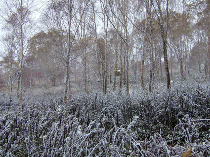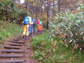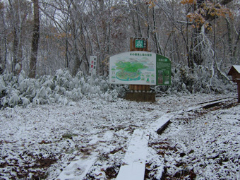 落葉のジュータン(雪化粧の登山道 紅葉と白い妖精)
